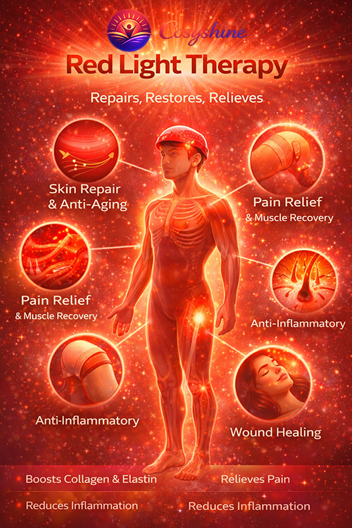 Red light, typically in the 620–660 nm wavelength range, is effectively absorbed by the skin and superficial tissues.