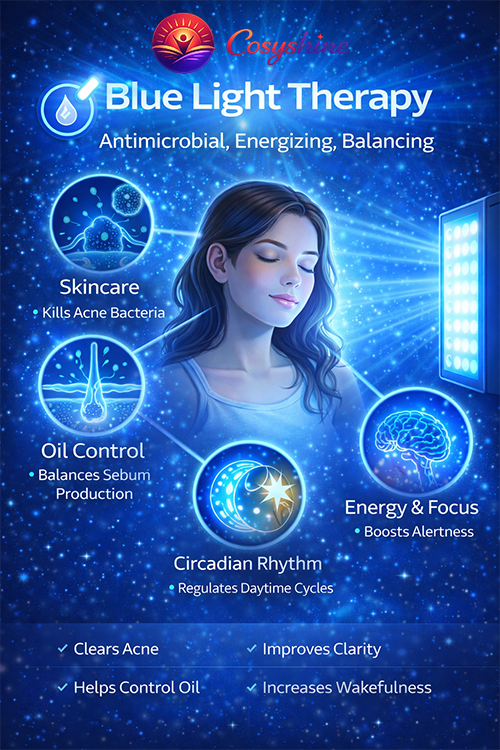Blue light is an awakening and purifying light, more suitable for daytime use.